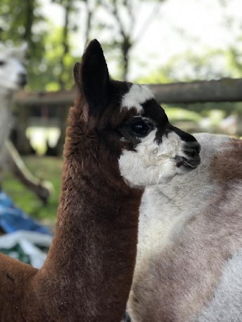 Henrietta hat einen farbenfrohen genetischen Hintergrund, der das Potenzial für wunderschöne und einzigartig gefärbte Cria in der Zukunft verspricht.
