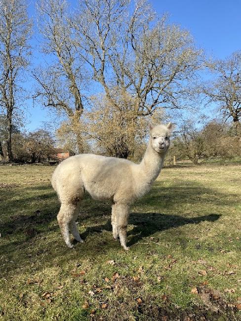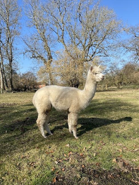 Hübsches 2-jähriges weißes Alpaka Weibchen